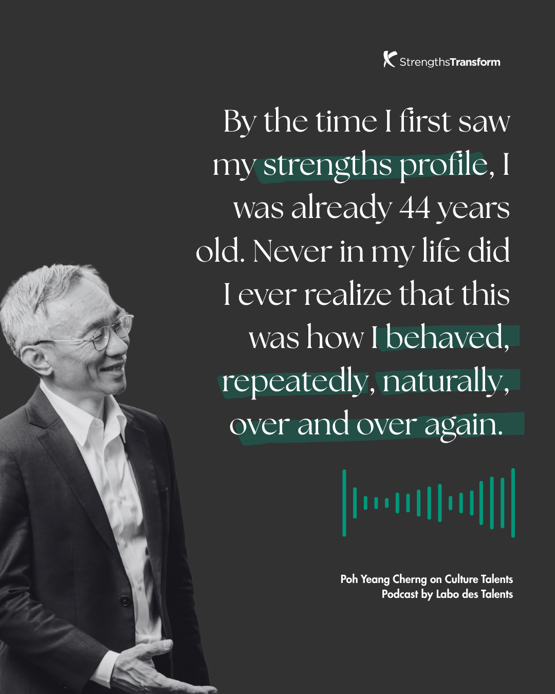 In a recent podcast series by Labo des Talents, Mr. Poh Yeang Cherng — Founder and Principal Consultant of StrengthsTransform — reflects on his journey of helping individuals, leaders and organisations thrive through a strengths-based approach.